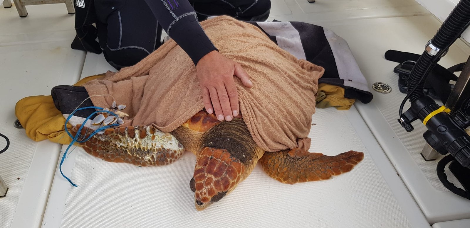 En muchas ocasiones, el enmallamiento provoca infecciones en las aletas que se pueden extender por todo el cuerpo, suponiendo un peligro mortal, si el pedazo de plástico que dificulta la circulación no es extraído por un profesional. Es por eso que desde las instituciones implicadas en el rescate y recuperación de fauna marina catalogada se hace un llamamiento para que se respeten los protocolos en beneficio del bienestar animal.