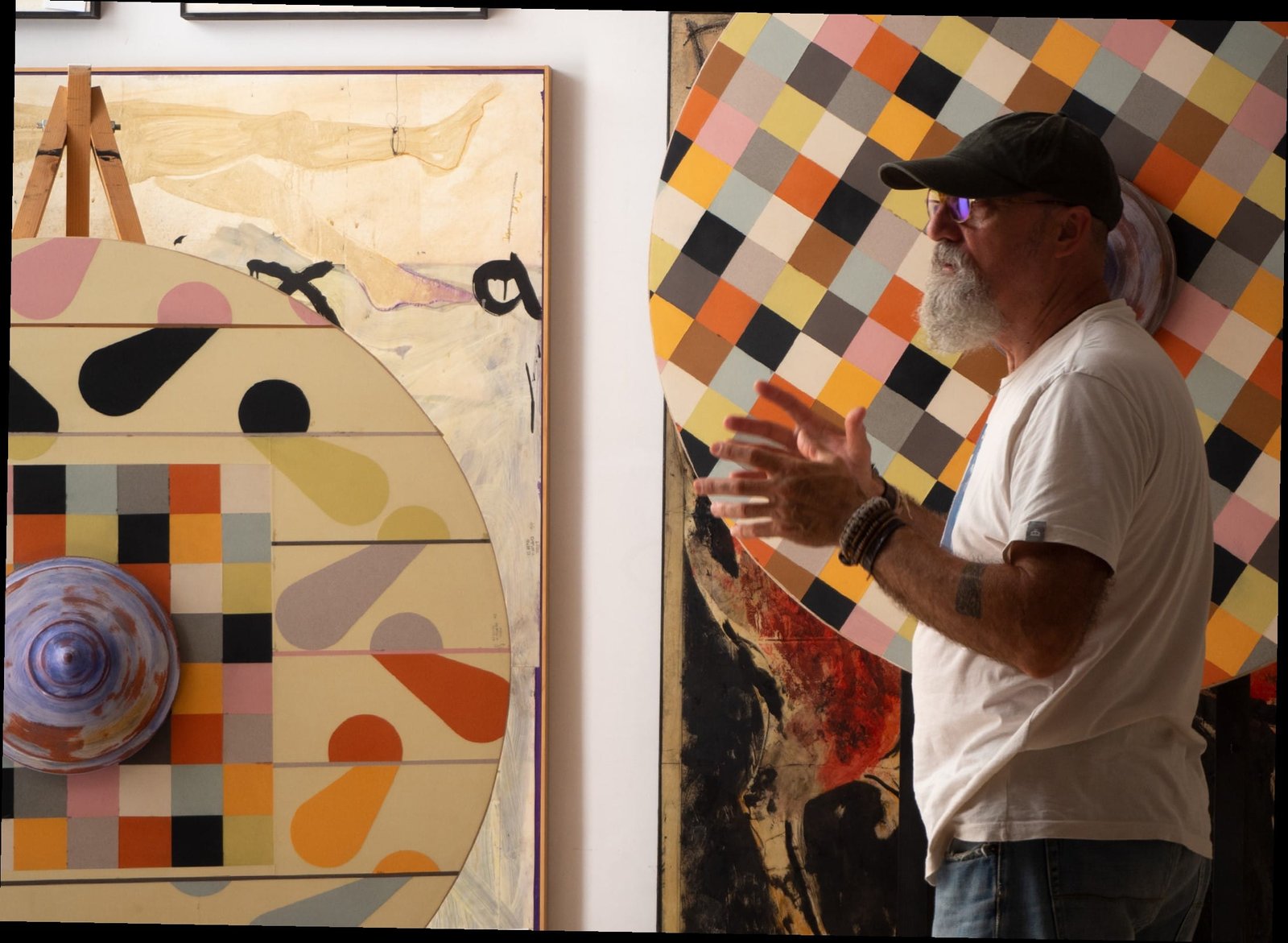 Hay una constante que se mantiene durante todo el proceso y se refleja en las obras, sean pictóricas o escultóricas: el círculo, que es el hilo conductor y gran protagonista que unifica todo el proceso creativo.