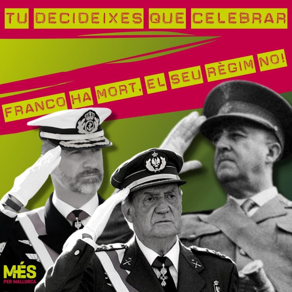 Sin embargo, el alcalde de Manacor ha decidido compartir en su cuenta de Facebook una publicación de su partido político «MÉS per Mallorca» en la cual afirman que «Tu decides que celebrar. Franco ha muerto, su régimen no!» con la clarísima intencionalidad de restar legitimidad a una Constitución aprobada por una mayoría aplastante del 91,81% de votantes.