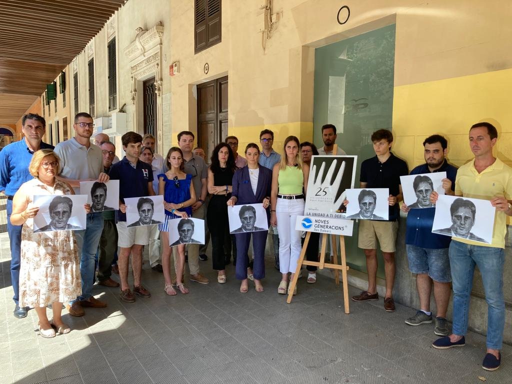 Nuevas Generaciones de Baleares se ha sumado al acto de homenaje que se celebra a nivel nacional a Miguel Ángel Blanco en el 25º aniversario de su muerte en manos de la banda terrorista ETA y han guardado cinco minutos de silencio ante la sede del Partido Popular de Palma.