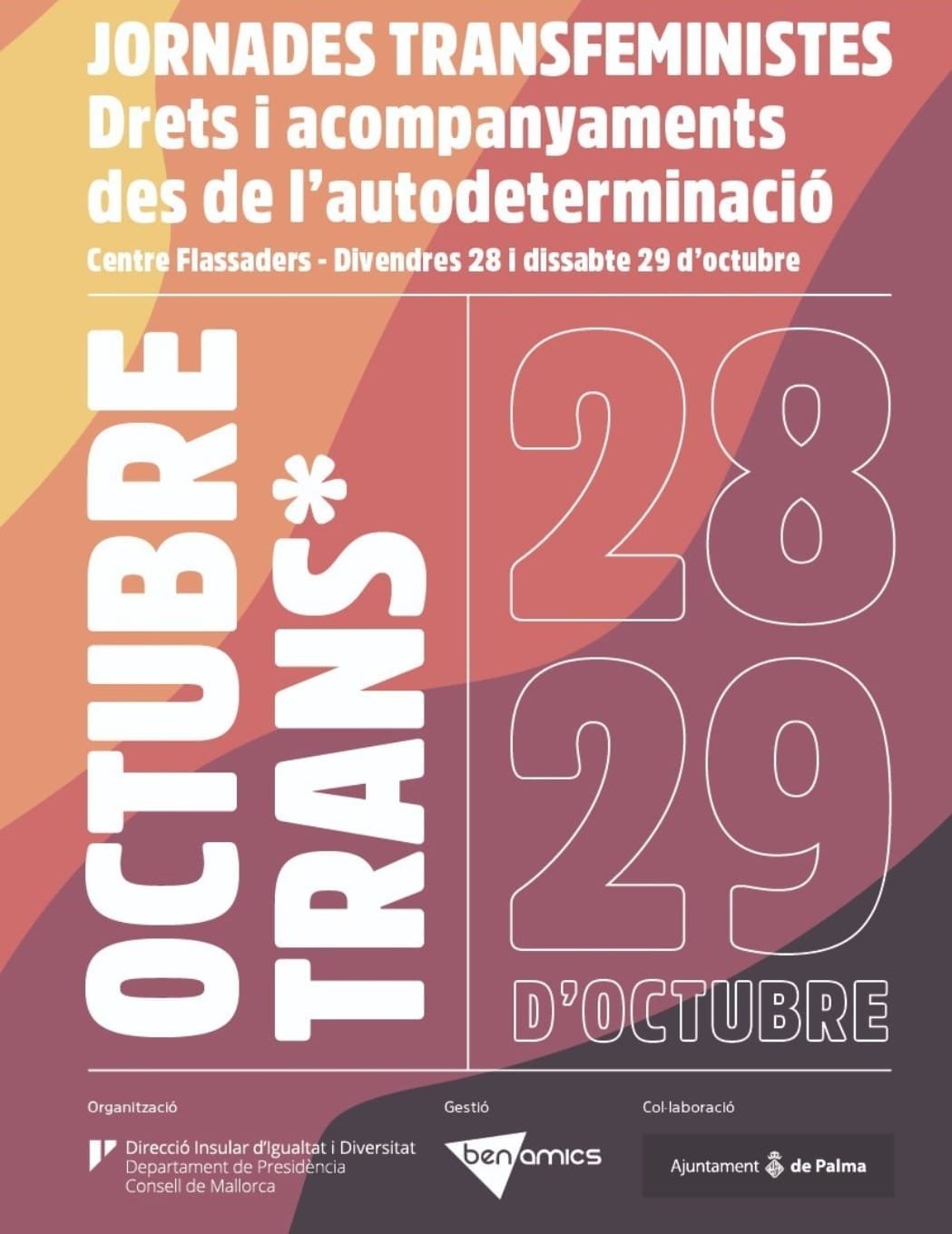 El Consell de Mallorca y la asociación LGTBI ‘Ben Amics» ha organizado los días 28 y 29 de octubre unas jornadas transfeministas, bajo el título ‘Derechos y acompañamientos desde la autodeterminación‘.