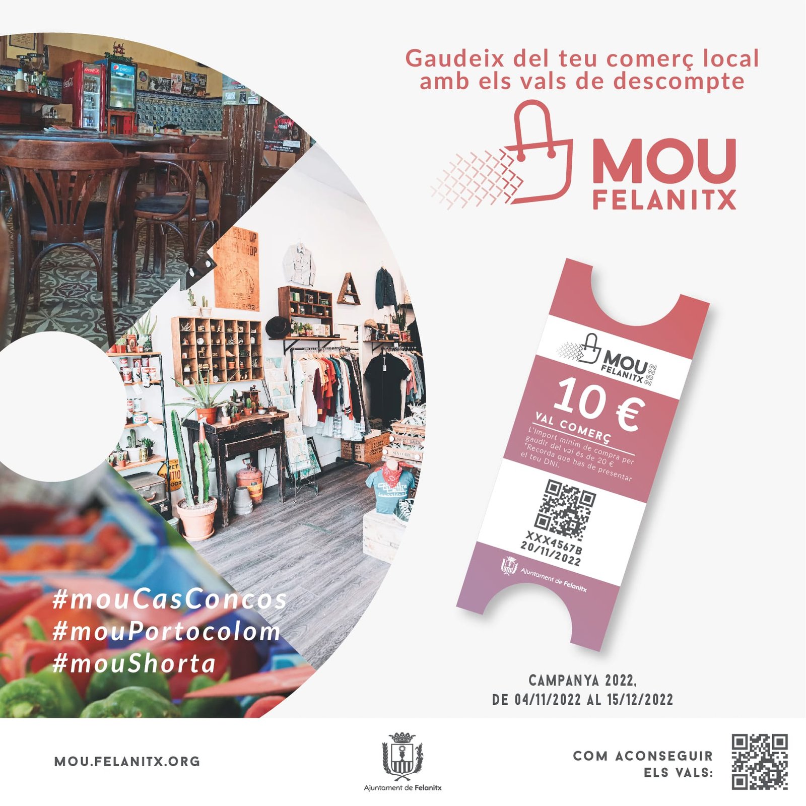El concejal de comercio Rafel Rubio ha explicado «la campaña de 2021 generó con las tres ediciones de #MouFelanitx un movimiento económico de más de 300.000€ en el municipio. Los ciudadanos se descargaron casi 8.500 vales. Con esta edición de 2022 que hacemos a finales de año tenemos una ayuda para los comercios, bares y restaurantes de 40.000€. El objetivo es impulsar la economía y que los ciudadanos gasten en Felanitx».
