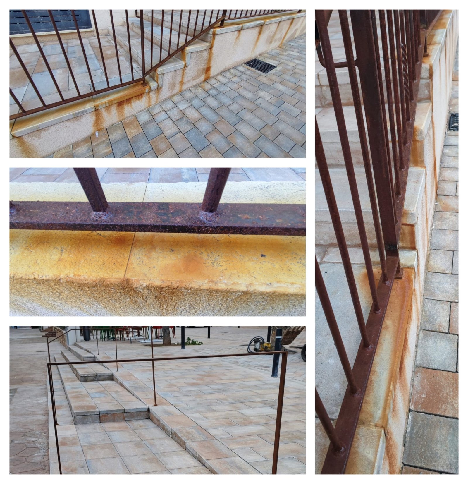 Como se puede observar, las barandillas o pasamanos se acaban de instalar pero ya están completamente oxidados. Un hecho que obviamente despierta la indignación en cualquier persona por que no es ni normal ni lógico.