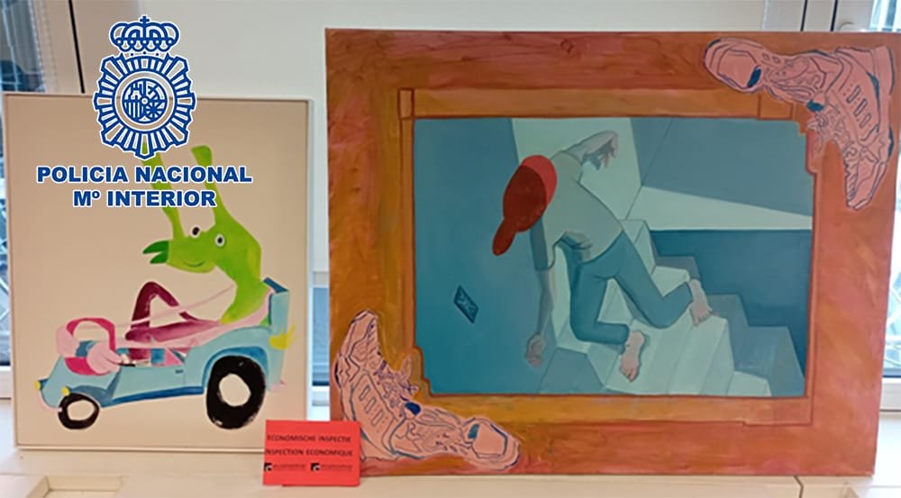Se trata de cuatro de las siete obras, valoradas en 31.000 euros, -de los artistas José Cheetham, Marc Badia, Dimitros Tade y Fabio Finamore- que un particular tenía expuestas en una galería de Palma y que fueron objeto de apropiación indebida por parte de varios sujetos.