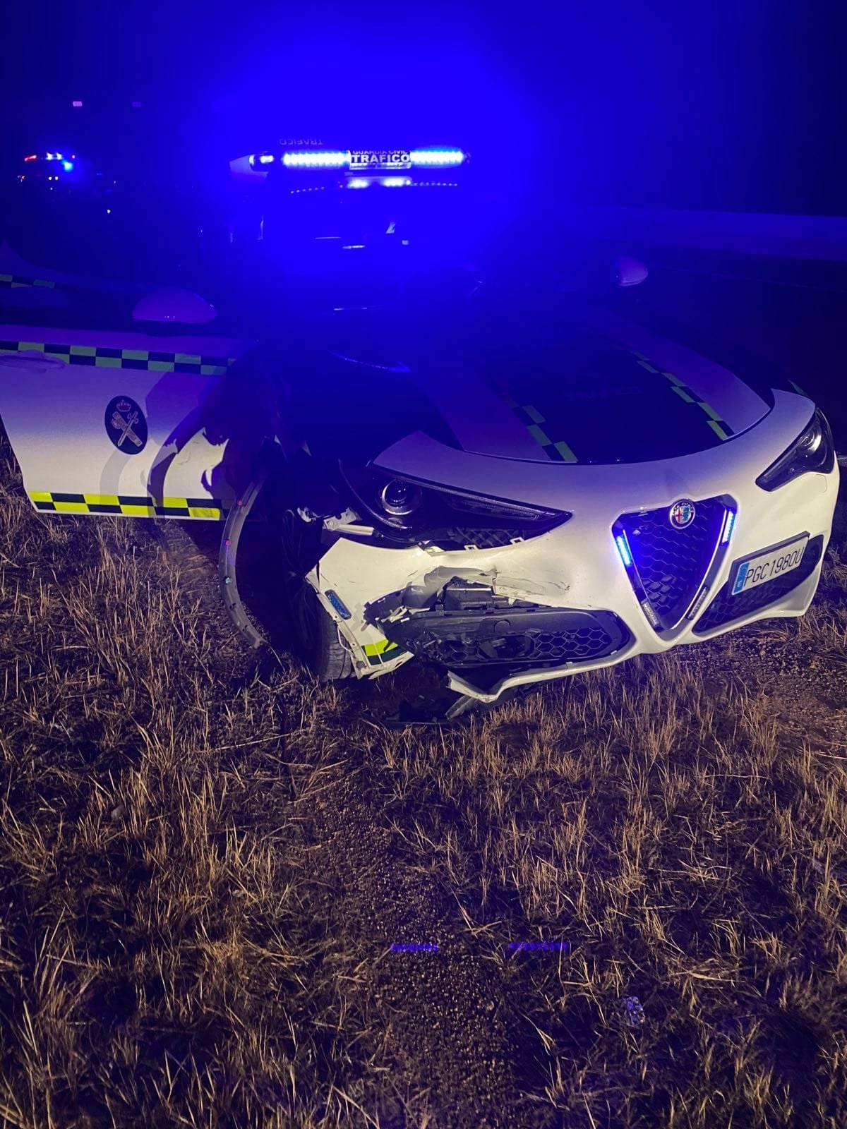 Los agentes no tuvieron otra opción que interponer el vehículo oficial para conseguir detener al otro y así evitar que ocasionara una colisión de más gravedad con los demás usuarios de la vía.