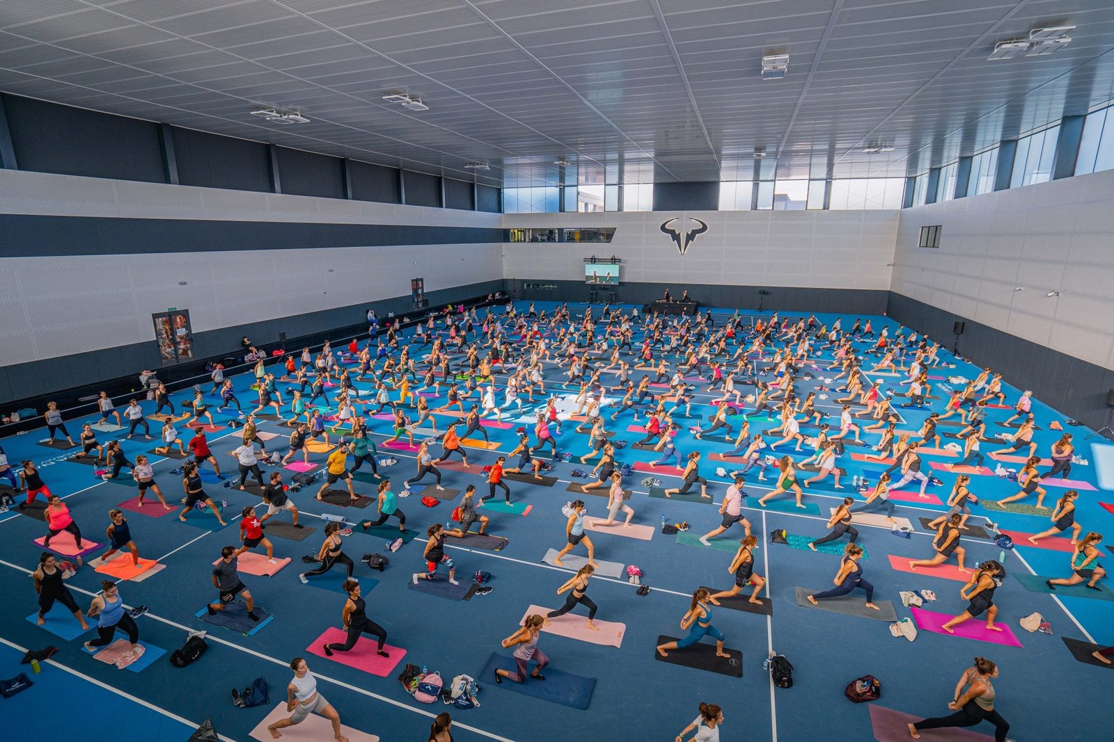 La Rafa Nadal Academy transformó sus 3 pistas de tenis indoor en una clase masiva de pilates en la que vibraron más de 400 personas.