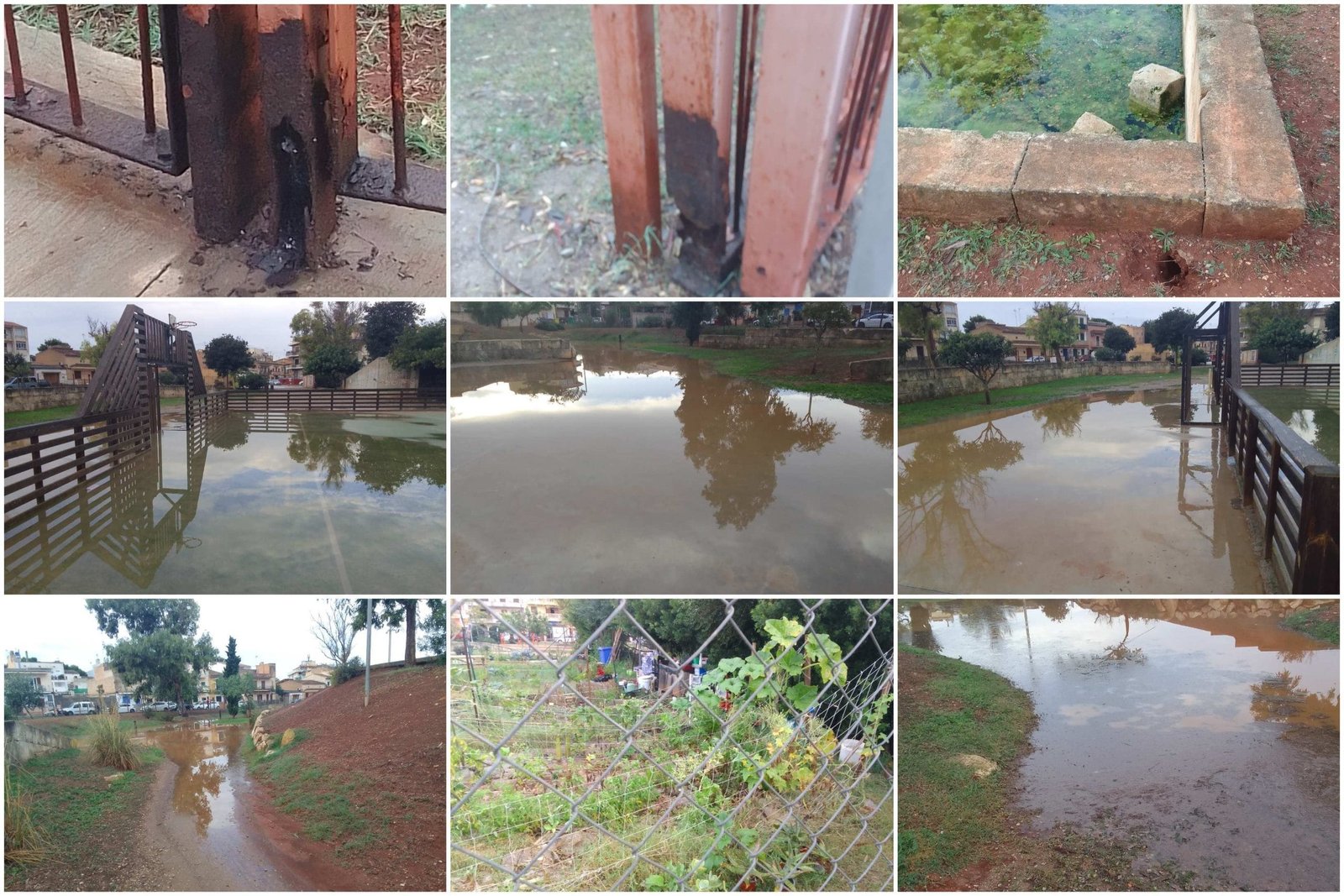Con las lluvias que han caído hoy en Porto Cristo ha quedado el parque anegado lo cual demuestra que no hay un sistema de alcantarillado en condiciones ya que cada vez que llueve el parque se convierte en un gran lago: