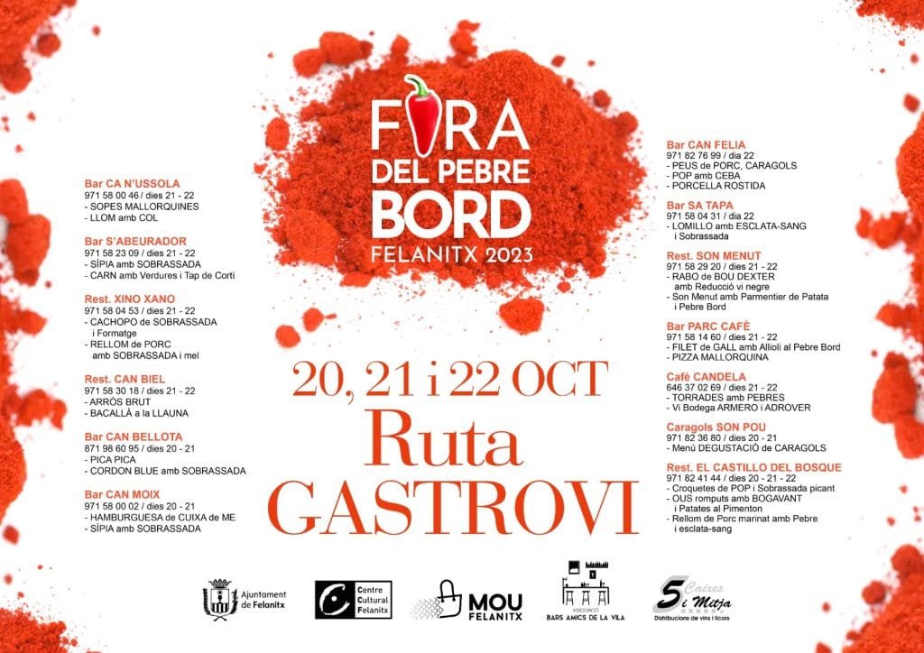 Este fin de semana se celebra la ya tradicional, y más que consolidada, Fira del Pebre Bord en Felanitx. Una feria que se celebra cada año el domingo después de Sant Lluc (18 de octubre) y que este año se inicia este viernes, día 20 de octubre, y finaliza el domingo, día 22.