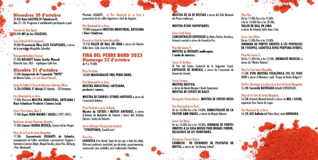 Una edición en la que se han presentado dos programas. Por un lado el programa de la feria en si, Fira del Pebre Bord 2023, programa que se puede ver a continuación:
