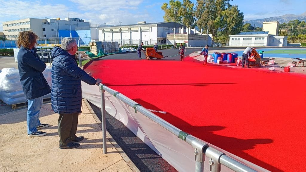 - De forma paralela, avanzan también a muy buen ritmo las labores de remodelación y mejora de la pista de atletismo del Polideportivo Municipal Mateu Cañellas, que se prevé estén ya finalizadas a final de mes.
