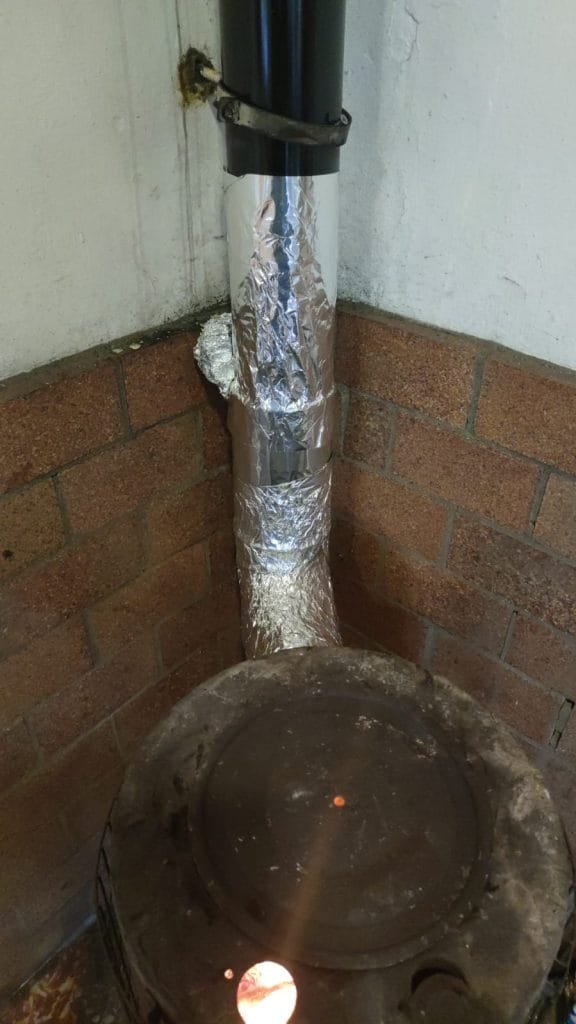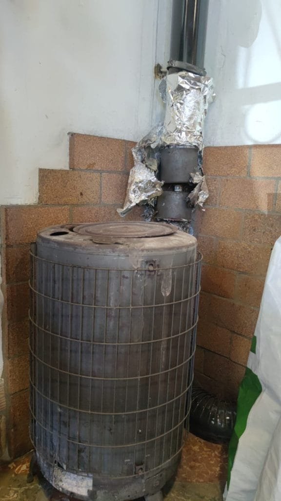 Nuestros lectores podrán ver a continuación como ha quedado la estufa tras la chapuza-arreglo provisional que han tenido que llevar a cabo los ciudadanos que habían alquilado está casa: