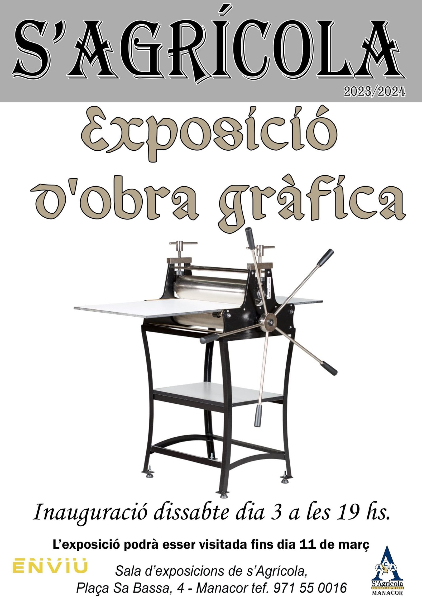 Comisariada por el crítico de arte Antoni Sansó Servera, el sábado día 3 de febrero a las 19 horas se inaugurará una exposición de obra gráfica en la sala de exposiciones de la Asociación Cultural S’Agrícola.