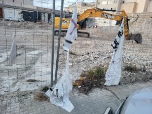 Rompen y pisotean las pancartas contra la construcción de la mezquita