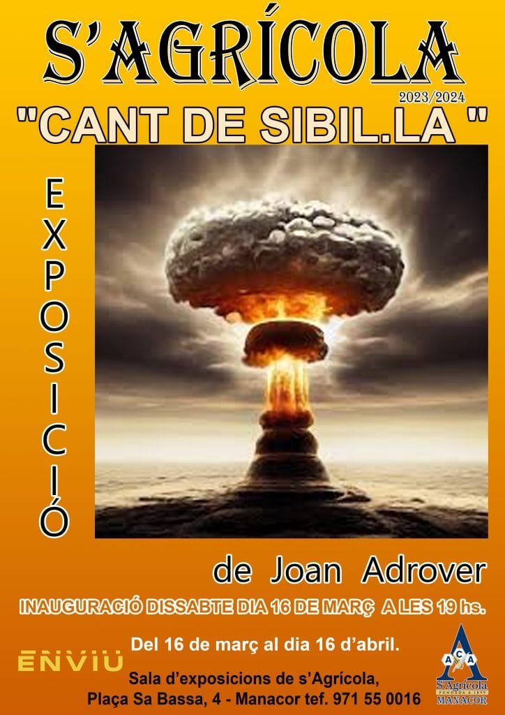 El próximo sábado día 16 de Marzo se inaugurará a las 19:00 horas en la sala de exposiciones de la Asociación Cultural S’Agrícola la exposición del artista manacorí Joan Adrover.