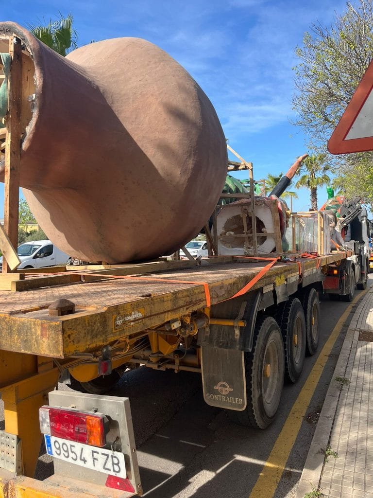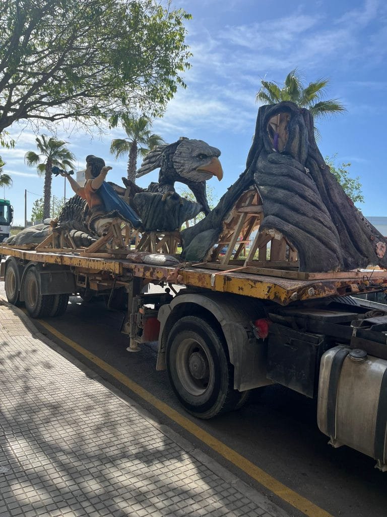 El departamento de Comercio del Ayuntamiento de Manacor ha cedido las figuras gigantes basadas en el águila de la fábula La flor romanial, que se podrá visitar en la plaza de Cort, y la figura basada en la fábula de En Joanet de sa jarra, que se instalará en Ses Voltes. Las figuras se han trasladado este viernes por la mañana para ser instaladas en Palma.