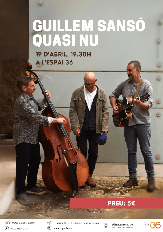 El precio de la entrada es de 5 euros y las entradas se pueden adquirir en https://ticketib.com/es/events/cafe-concert-amb-guillem-sanso-quasi-nu