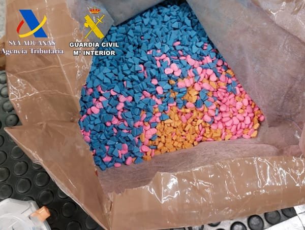 Una vez registradas, se comprobó como en una de ellas se encontraba un doble fondo, dentro del cual estaba oculto un paquete con 10.940 pastillas, que tras realizarse el test de sustancias estupefacientes arrojó positivo en Metanfetamina (MDMA, ‘éxtasis’).