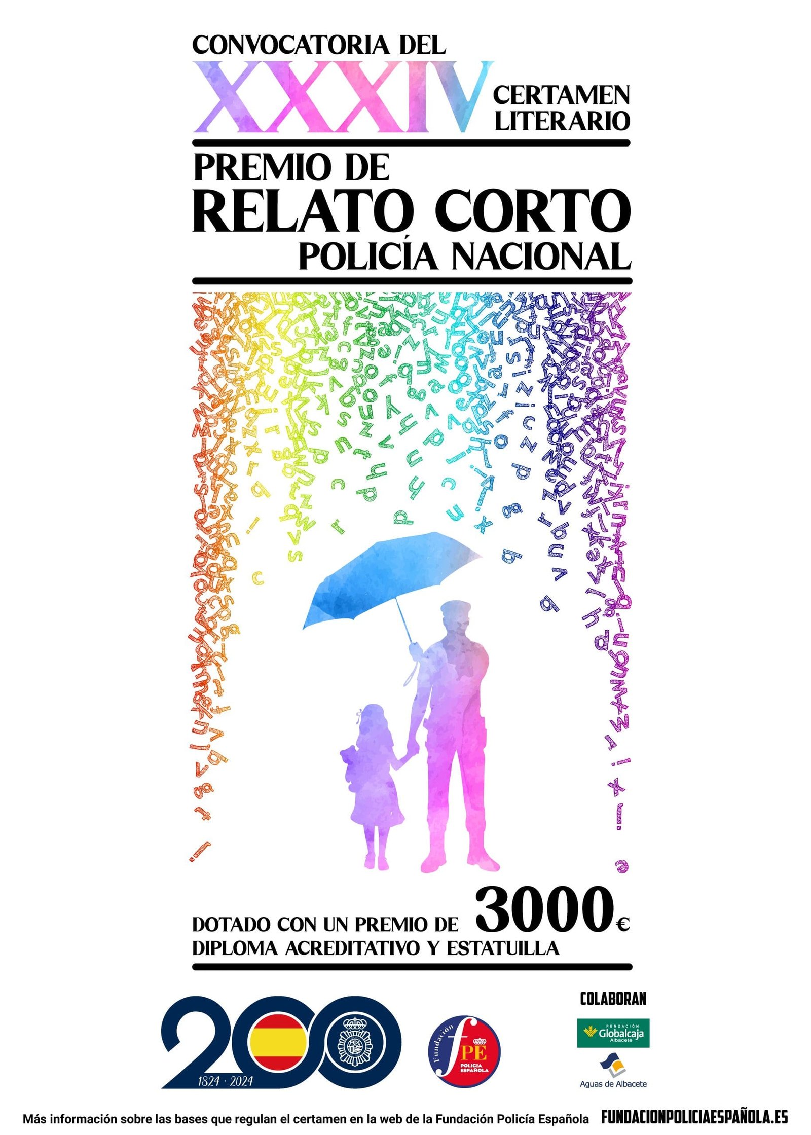 Hoy se ha abierto el plazo de presentación de obras para la la XXXIV edición del “Premio de Relato Corto Policía Nacional” promovido por la Fundación Policía Española y con la colaboración de la Fundación Globalcaja y Aguas de Albacete. En el marco de los actos del Bicentenario de la Policía Nacional, está dotado con un premio de 3.000 euros, diploma y estatuilla para la persona ganadora y un premio de 500 euros y diploma para la primera obra finalista. Las obras se podrán presentar a concurso hasta el día 30 de septiembre inclusive y deberán contar con una extensión de entre cinco y quince páginas sobre género policiaco, criminal o de suspense.