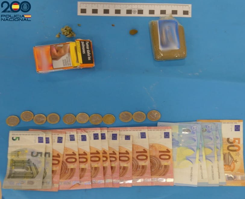 Cuando los policías se percataron del olor, le realizaron un cacheo superficial a fin de localizar sustancia estupefaciente, siendo así que se localizó diferente sustancia estupefaciente entre marihuana y hachís que llevaba en los bolsillos, así como dinero en efectivo.