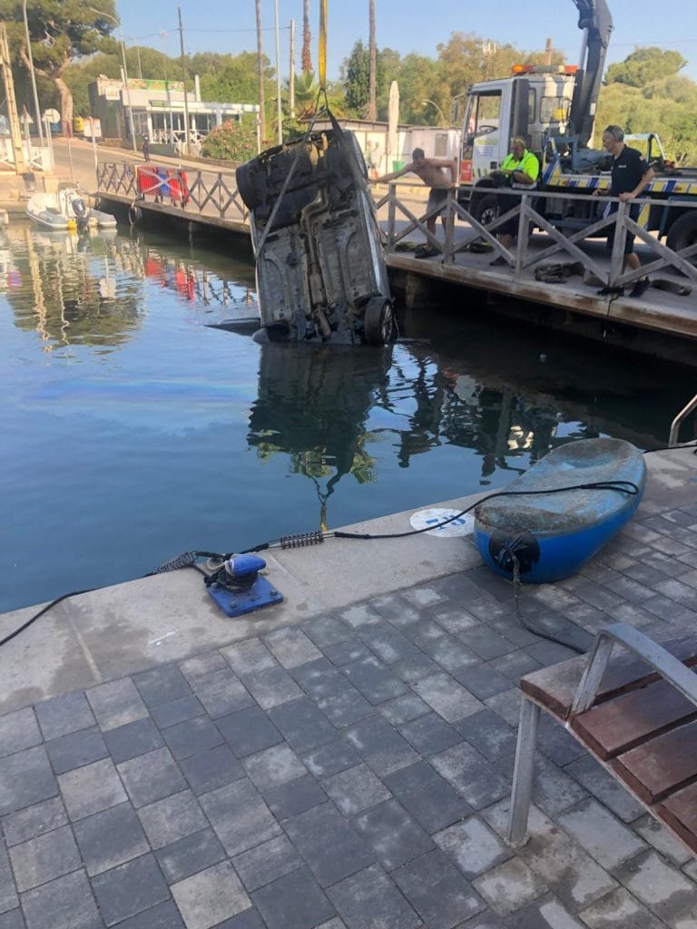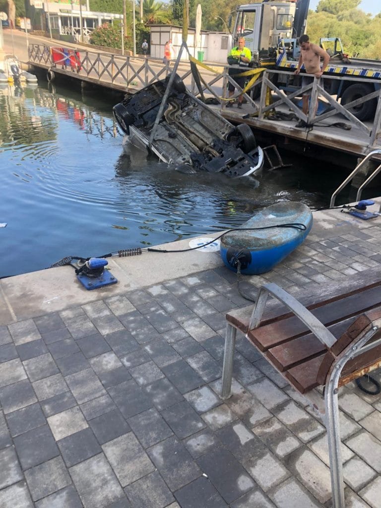 El 5 de julio un coche sufría un accidente a primera hora de la mañana y, tras romper las protecciones de madera, acababa hundiéndose en el Riuet de Portocristo.
