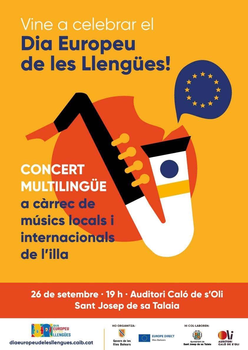 Con motivo del Día Europeo de las Lenguas, hoy, día 26 de septiembre, el Govern de las Islas Baleares organiza un concierto en Sant Josep de sa Talaia, en colaboración con el ayuntamiento del municipio. El concierto tendrá lugar en el auditorio Caló de S’Oli, en el escenario exterior, una de las infraestructuras más espectaculares de Ibiza dedicada a las artes.