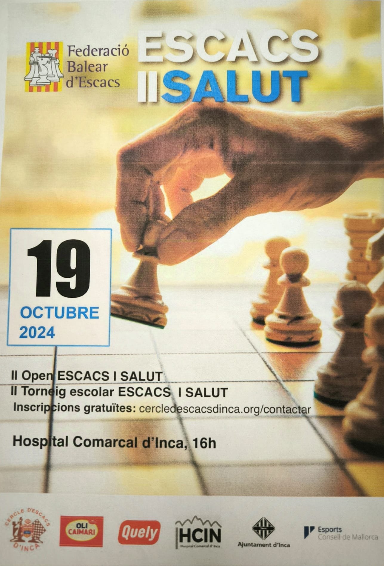 El próximo sábado, 19 de octubre, a las 16.00 horas, tendrá lugar en el aula 2 del Hospital Comarcal de Inca el II Open Ajedrez y Salud, organizado por la Federación Balear de Ajedrez y el Ayuntamiento de Inca.