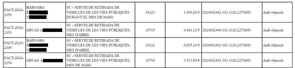Es precisamente por lo que comentamos en el anterior párrafo, el motivo por el cual al final de cada línea de las 4 facturas se indica «Amb objecció» (con objeción) y al alcalde no le queda más remedio que, ya que asi lo obliga la ley, llevarlas al pleno para que sean aprobadas. Es decir, no es por que sea transparente ni historias para no dormir similares que le hemos podido oir decir en algún pleno anterior, al respecto de este tipo de facturas.