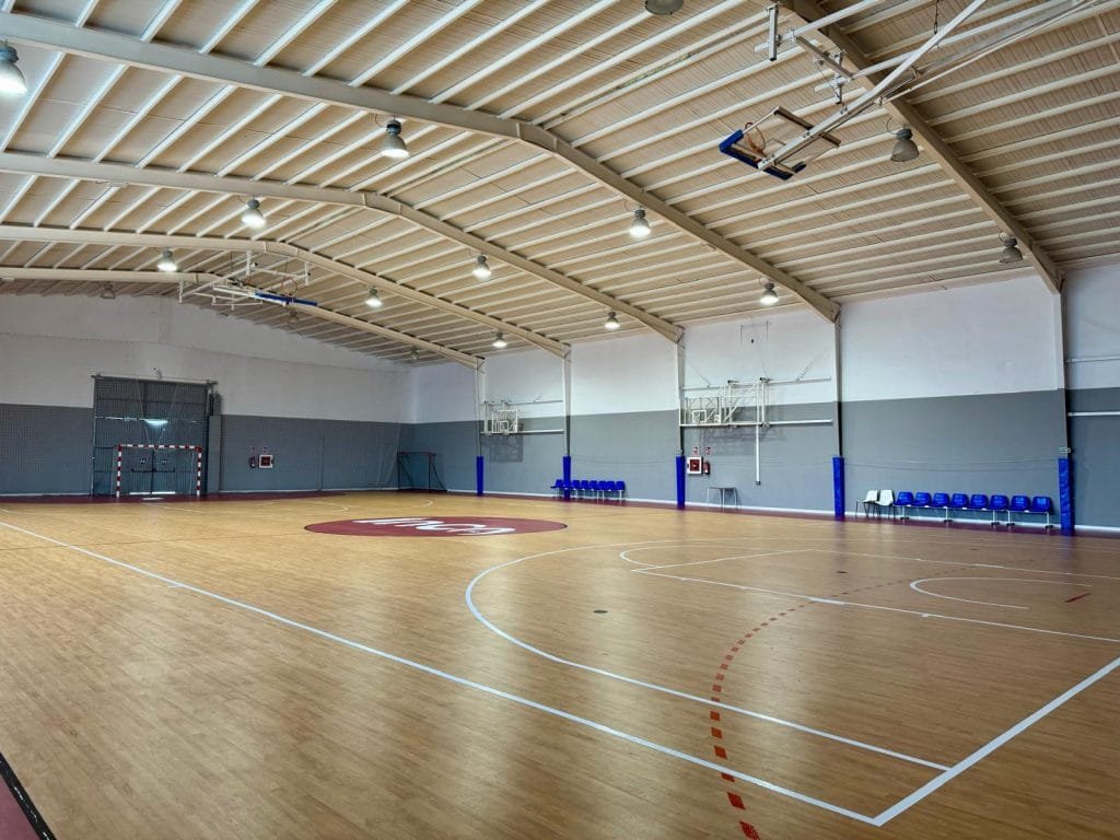 En el marco del proyecto de reforma se ha sustituido el actual pavimento sintético por un pavimento de caucho deportivo de 8 mm, repintando las líneas del campo de juego (1 campo de juego de baloncesto, 1 de fútbol sala y balonmano y 3 campos de minibaloncesto transversales).