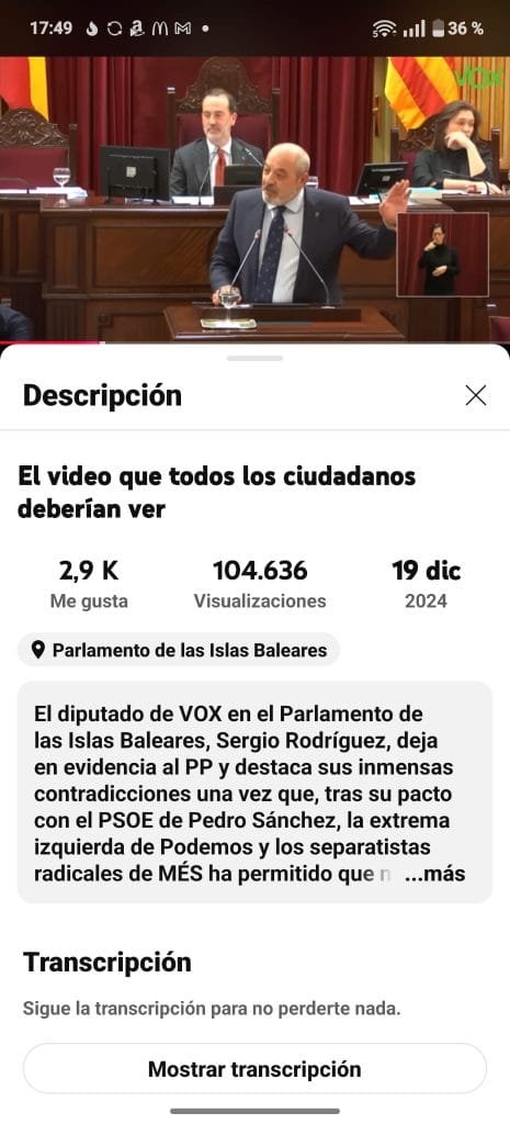 Al hilo de lo anterior publicábamos en nuestro canal de YouTube la brillantísima y esclarecedera intervención del diputado de VOX, Sergio Rodríguez, en el Parlamento de las Islas Baleares. Una auténtica lección de historia y una demostración de brillante parlamentarismo que se debería de estudiar en las escuelas:
