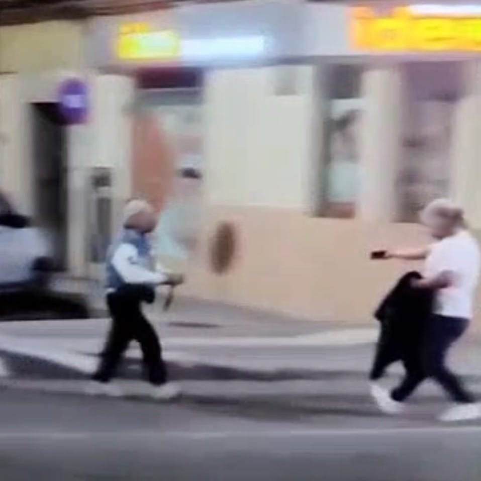 Cuando volvió el denunciado, sacó un cuchillo y una navaja y comenzó amenazar a los allí presentes, momento en que una patrulla de la Policía Nacional acudió al lugar, y observó a un hombre portando un cuchillo, por lo que los agentes desenfundaron sus armas reglamentarias.