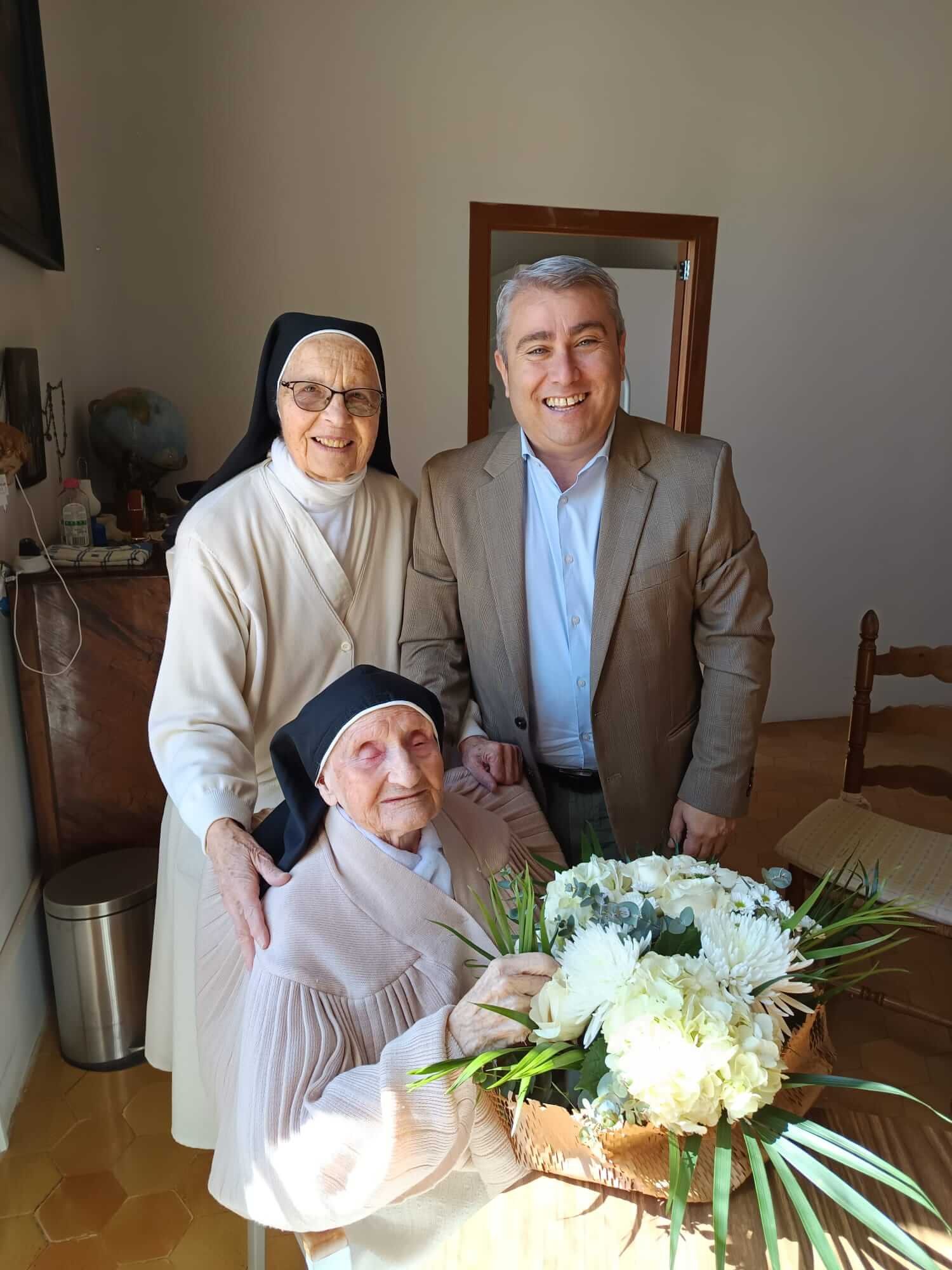 Sor Assumpció Fiol celebra hoy, 17 de marzo, su 102 aniversario y continuando con la tradición, el alcalde de Inca, Virgilio Moreno, se ha desplazado al Monasterio de Sant Bartomeu para compartir con ella este hito tan señalado.