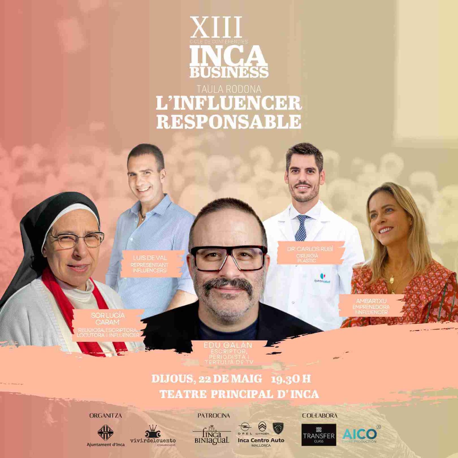 Por otra parte, el jueves 22 de mayo, a las 19.30 h, el Teatro Principal de Inca acogerá uno de los actos centrales de esta edición: «El influencer responsable», un coloquio que reflexionará sobre el papel de los creadores de contenido en la construcción de una sociedad más consciente y comprometida.