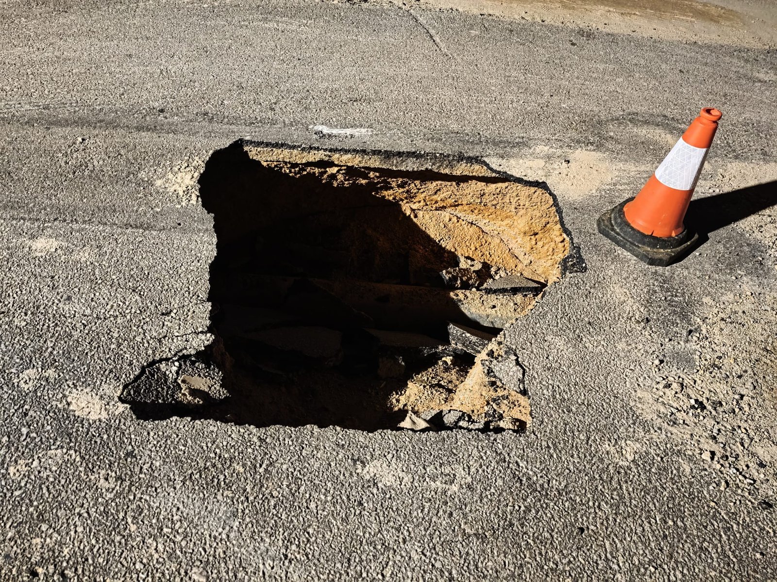 Desconocemos las causas del mismo, ya que el Ayuntamiento no ha facilitado información al respecto, pero testigos presenciales han indicado que a través del socavón salía una gran cantidad de agua.