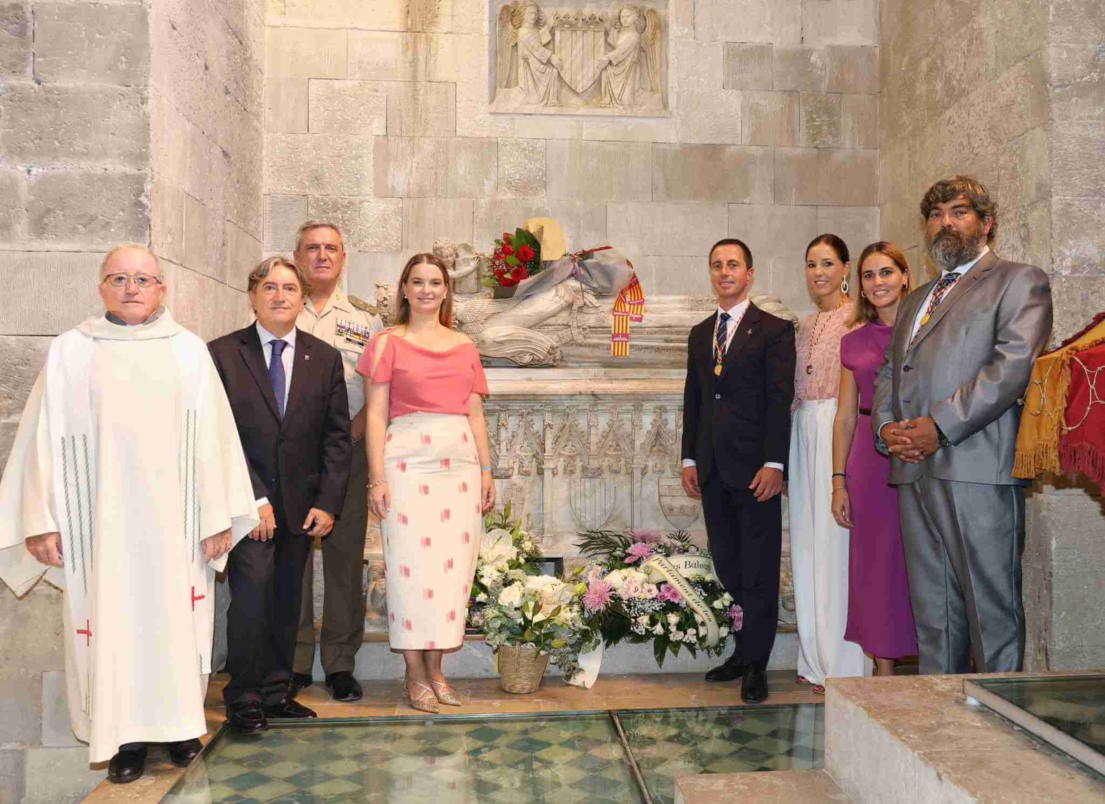 El acto ha continuado con la interpretación del himno de Mallorca, «La Balanguera», a cargo de la Capella de la Seu, que ha dado paso al momento más emotivo: la ofrenda floral al sepulcro del rey Jaume II, realizada por los máximos representantes institucionales en la capella de la Santísima Trinidad. A continuación, la ciudadanía ha tenido también la oportunidad de rendir homenaje depositando flores en las escaleras del altar mayor.