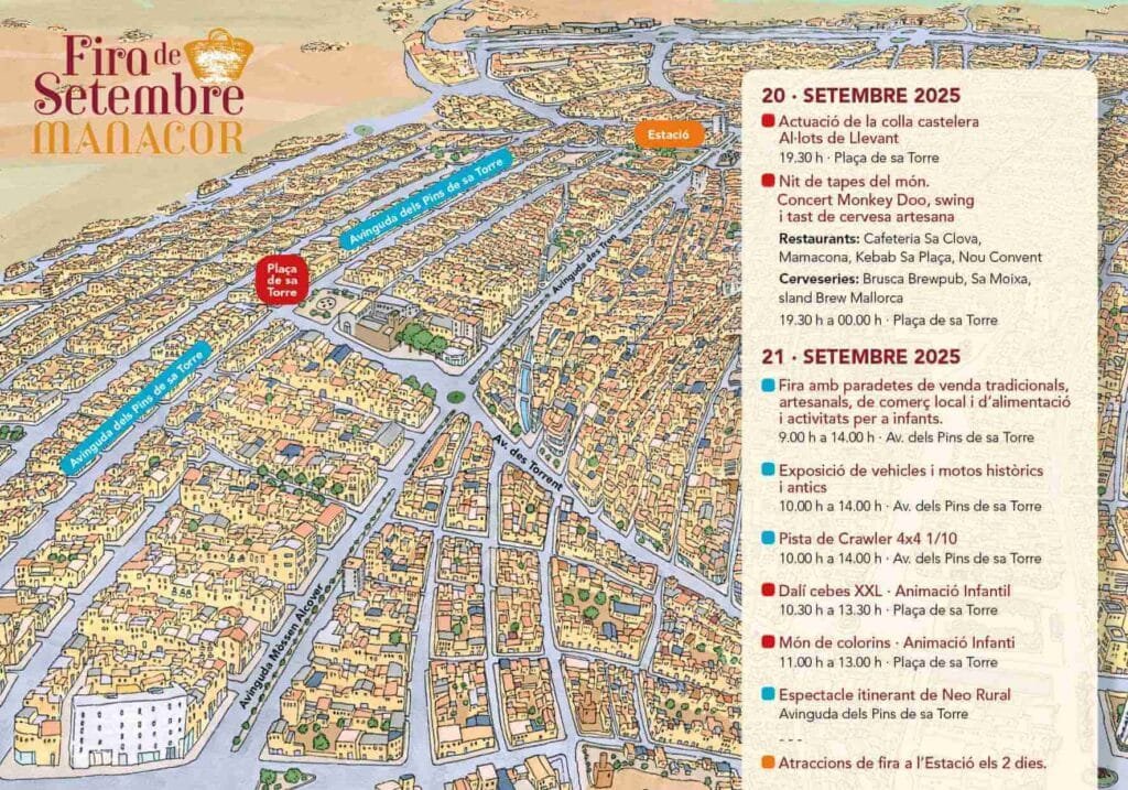 Manacor vivirá el fin de semana del 20 y 21 de septiembre una nueva edición de la Feria de Septiembre, que este año presenta una novedad destacada: el estreno de la avenida de los Pins de sa Torre como nuevo escenario principal.