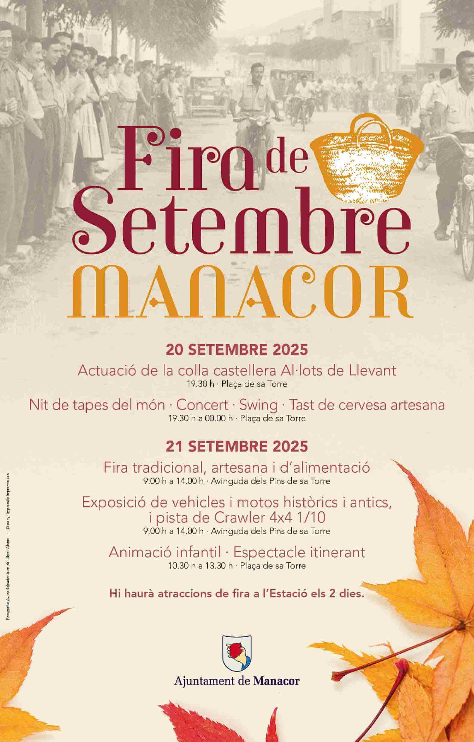 Manacor vivirá el fin de semana del 20 y 21 de septiembre una nueva edición de la Feria de Septiembre, que este año presenta una novedad destacada: el estreno de la avenida de los Pins de sa Torre como nuevo escenario principal.